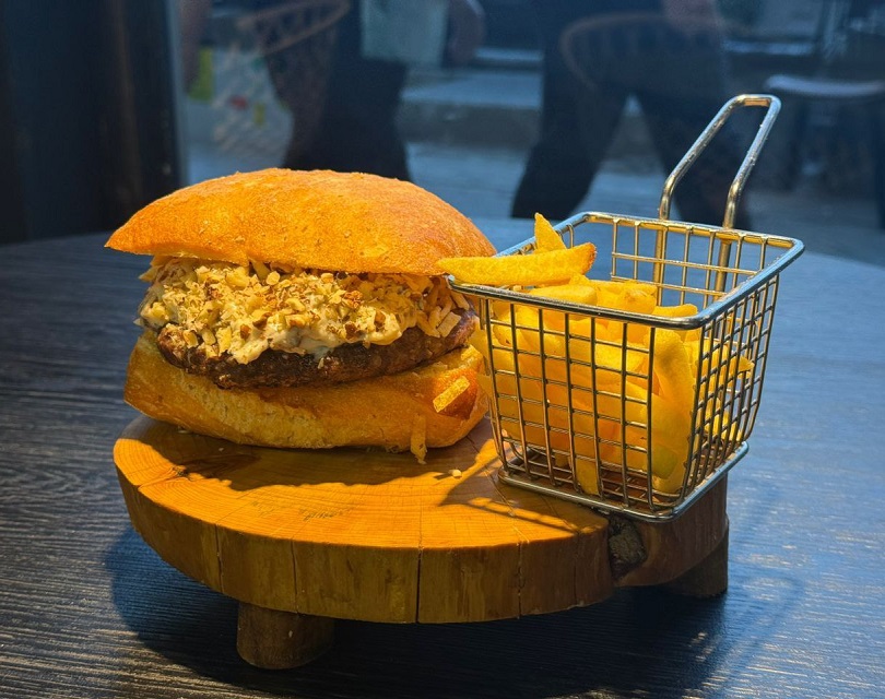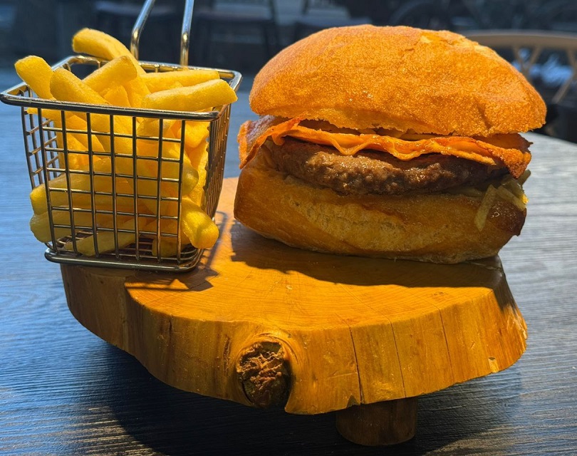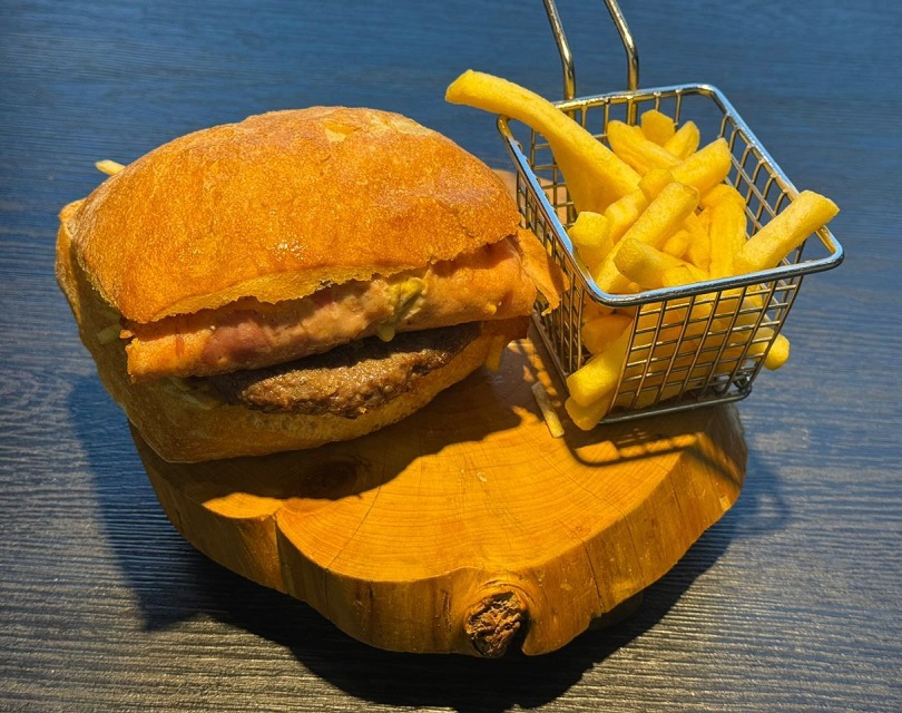 گوشت سردست گوساله و گوسفندی + ژامبون مرغ و گوشت تنوری با قارچ و پنیر + سس مخصوص برگر ذغالی 1379 + چیپس خلالی + سیب زمینی سرخ شده