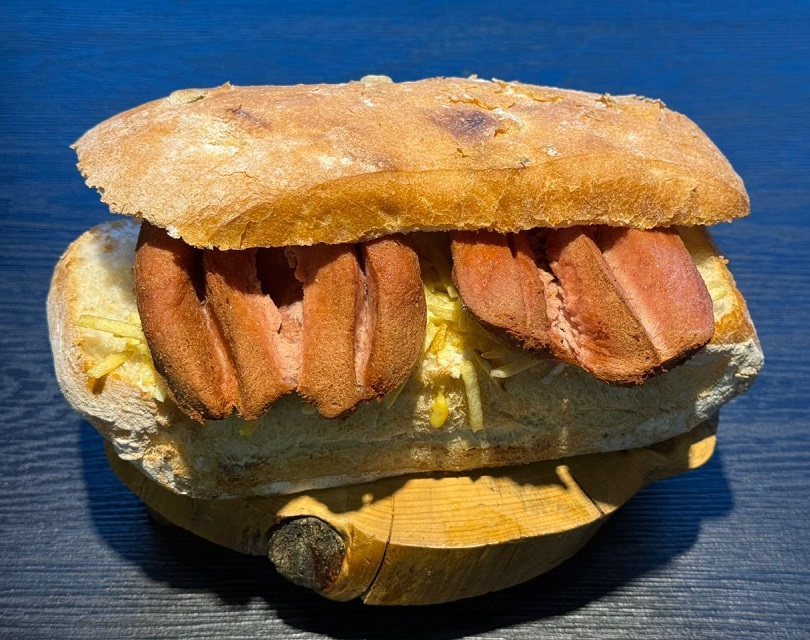 هات داگ مخصوص هانی برگر + سس پنیر + چیپس خلالی + سس خردل امریکن