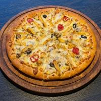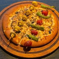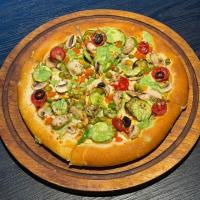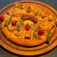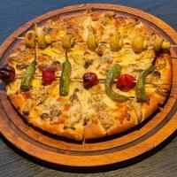 سس آویشن+ژامبون مرغ و گوشت+سوسیس+قارچ تازه+فلفل دلمه+زیتون