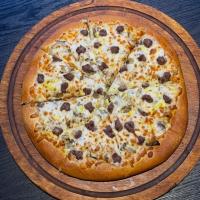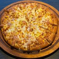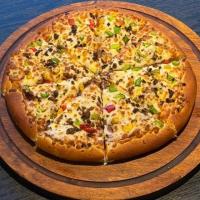 سس آویشن،ژامبون مرغ،مرغ پخته،قارچ پخته،ژمبون گوشت،بیکن،ذرت،سوسیس پنیری،پنیر پیتزا موزارلا میکس
